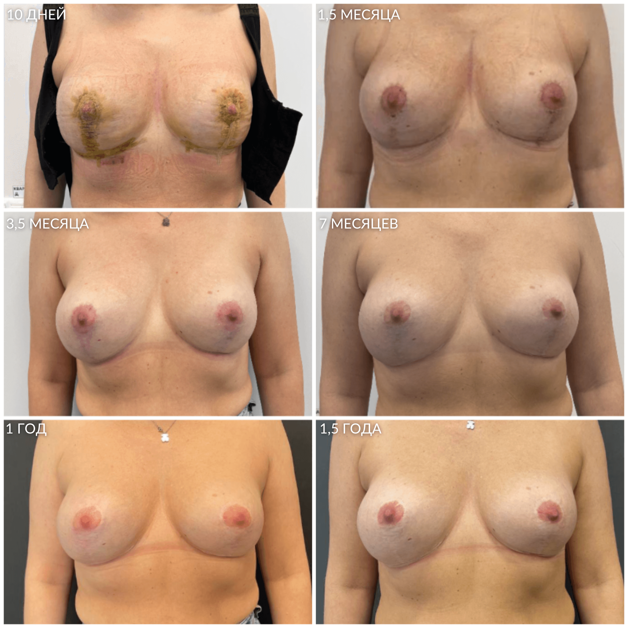 По мере реабилитации грудь приспускалась и занимала естественное положение.